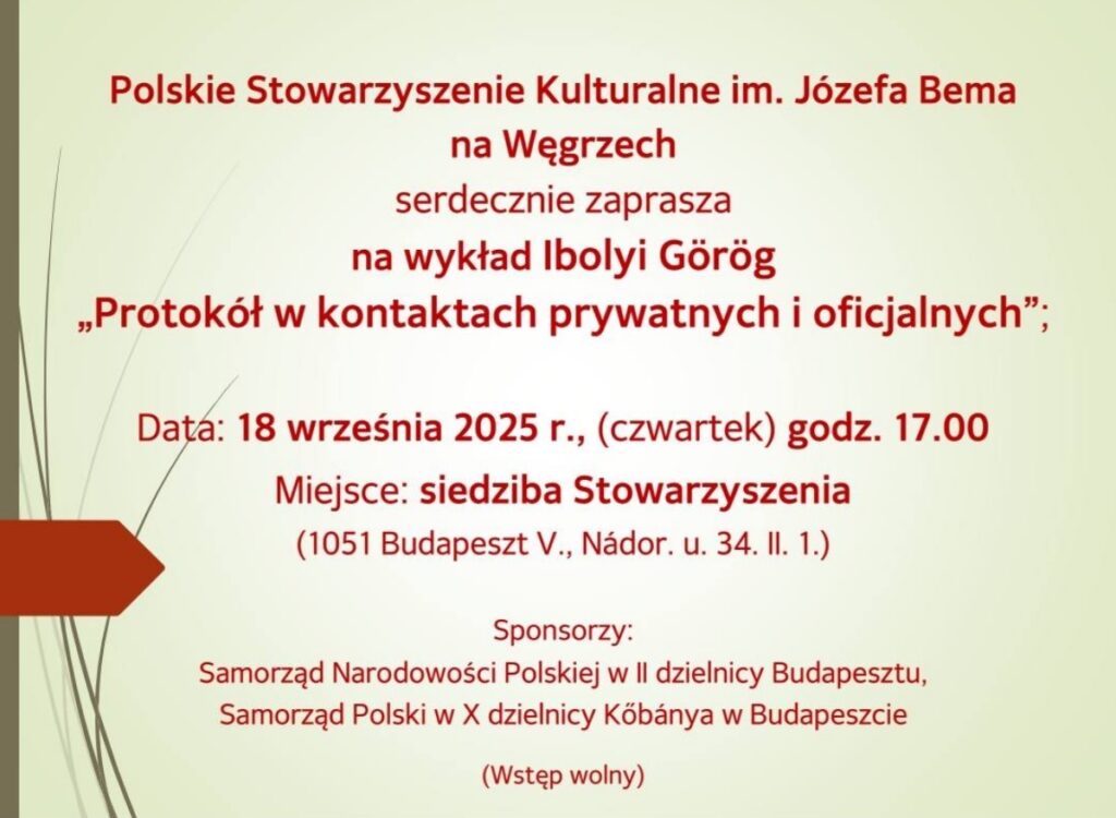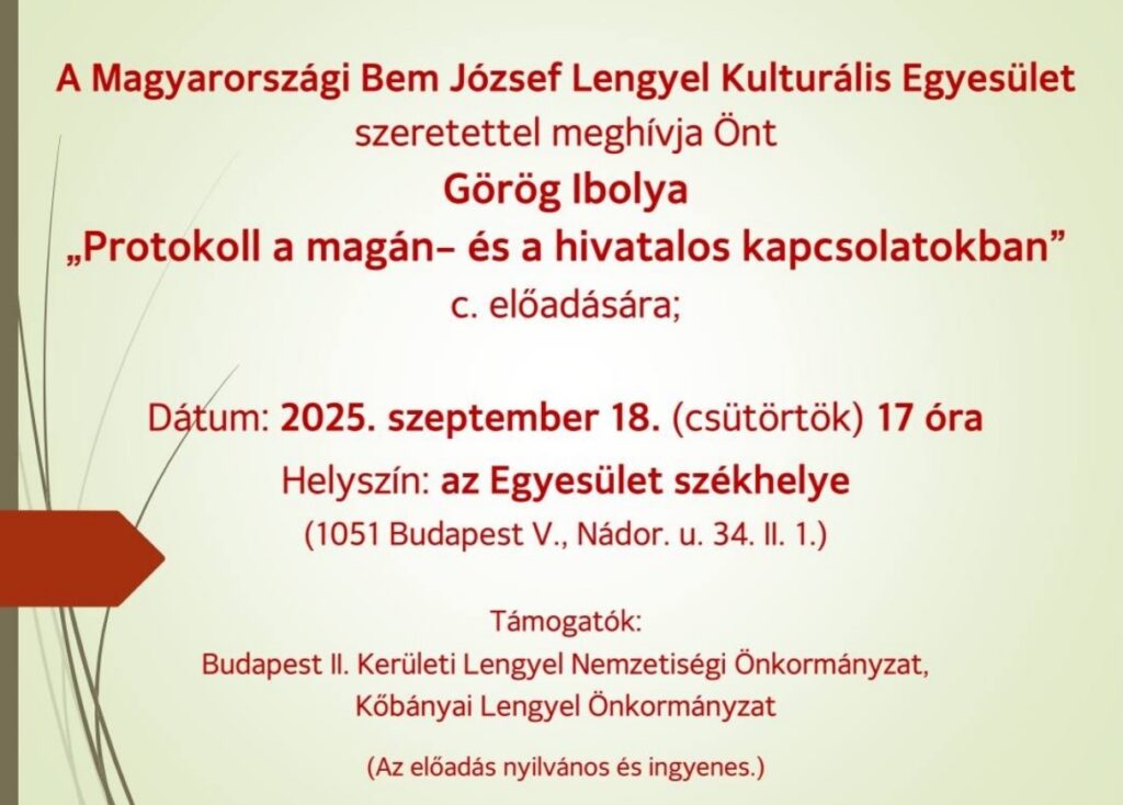 Protokół w kontaktach prywatnych i oficjalnych – Görög Ibolya – Protokoll a magán- és hivatalos kapcsolatokban 2025.09.09. Poprzedni WCZESNOJESIENNY KLARNETU CZAR - KORA ŐSZI KLARINÉTVARÁZS Nowszy Może Ci się spodobać “15-cie z 35-ciu” 2022.09.12. Wigilia 2023 2023.12.06. Film dokumentalny “Pamięć pozostaje” 2024.03.18.