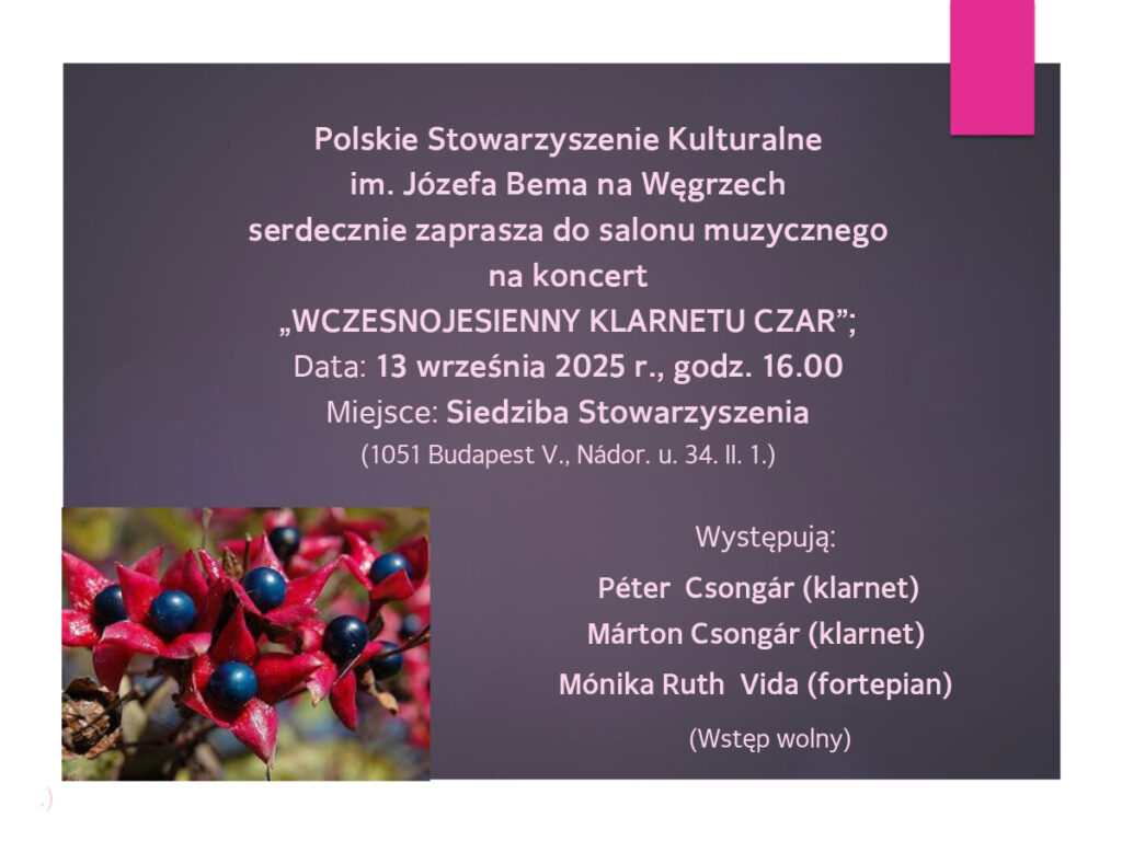 WCZESNOJESIENNY KLARNETU CZAR – KORA ŐSZI KLARINÉTVARÁZS 2025.09.06. Poprzedni Godzina W Nowszy Protokół w kontaktach prywatnych i oficjalnych - Görög Ibolya - Protokoll a magán- és hivatalos kapcsolatokban Może Ci się spodobać Zajęcia przedszkolne 2021.06.23. Upamiętnienie ofiar Zbrodni Katyńskiej i katastrofy pod Smoleńskiem 2022.04.08. In memoriam – Jacek Śniadowski 2022.07.28.